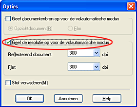 Schakel het selectievakje Geef de resolutie op voor de volautomatische modus in.