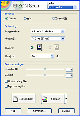 EPSON Scan maakt automatisch een voorbeeldscan en herkent de bron en het type van het document.
