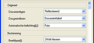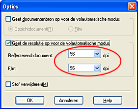 Als EPSON Scan de juiste documentbron niet herkent, kunt u het documenttype opgeven in het dialoogvenster Opties. Zie de online-Help voor meer informatie.