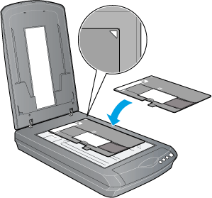 Plaats uw materiaal in de filmhouder en leg de houder op de glasplaat. Raadpleeg het betreffende gedeelte hierna voor het type transparante materiaal dat u wilt scannen. Meer informatie vindt u in de gedeelten hierna.