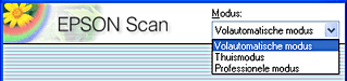 Wanneer u EPSON Scan opnieuw start, is automatisch de laatst gebruikte modus actief.