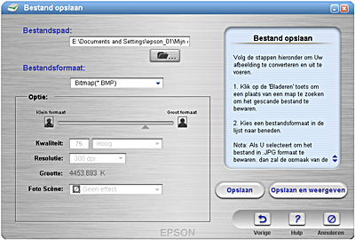 Met deze toepassing kunt u afbeeldingen scannen en naar een gewenste toepassing sturen voor verdere bewerking. Wanneer u deze toepassing start, verschijnt het volgende venster en wordt de afbeelding gescand via EPSON Scan.