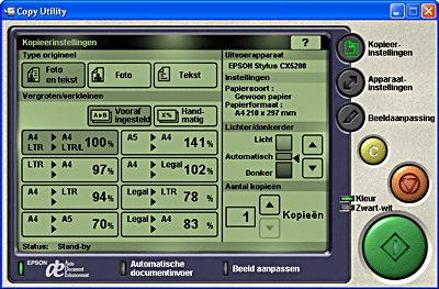 Met deze toepassing verandert u uw scanner in een digitaal kopieerapparaat. De toepassing lijkt op een echt kopieerapparaat, maar de functies ervan zijn een stuk krachtiger en flexibeler dan die van een traditioneel apparaat. Wanneer u deze toepassing start, verschijnt het volgende venster.