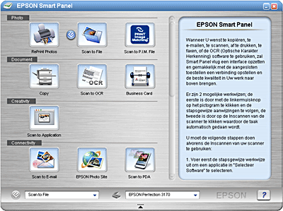 ![]() | Selecteer een toepassing in de keuzelijst EPSON Smart Panel. |