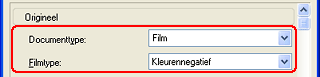 ![]() | Geef onder Origineel de juiste instellingen op voor uw filmmateriaal. |