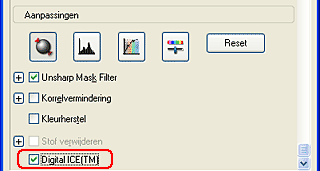 ![]() | Schakel het selectievakje Digital ICE in. (Schuif door naar het onderste deel van het scherm, indien nodig.) |
