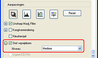 EPSON Scan heeft hiervoor twee speciale functies: Stof verwijderen en Digital ICE.