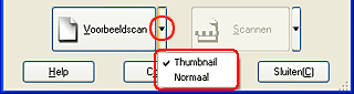 U kunt zelf de gewenste methode voor de voorbeeldscan selecteren: een miniatuurvoorbeeld of een normaal voorbeeld. Klik op het kleine pijltje rechts naast de knop Voorbeeldscan en selecteer Thumbnail of Normaal.
