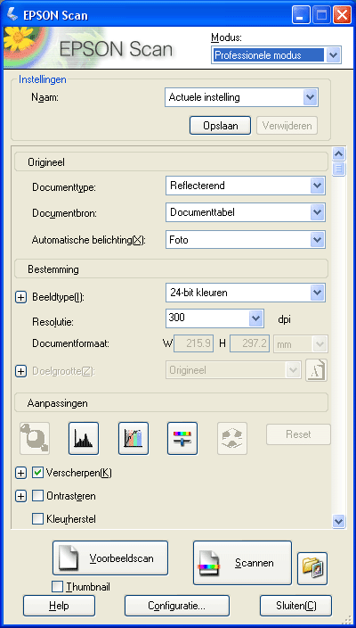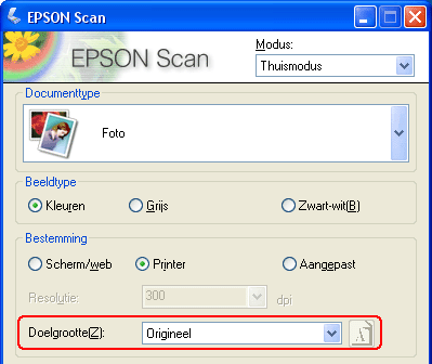 Instellingen voor het Origineel. Aan de hand hiervan weet Epson Scan welke type document of foto u scant.