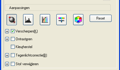Als u de kwaliteit van de afbeelding wilt aanpassen, klikt u op de gewenste afbeelding(en) en brengt u de wijzigingen aan zoals beschreven in Kleur- en andere beeldinstellingen aanpassen. Als u de doorgevoerde aanpassingen op alle afbeeldingen wilt toepassen, klikt u op de knop Alle.
