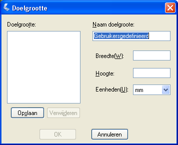 ![]() Voer een naam voor het aangepaste formaat in, voer het formaat in en klik vervolgens op de knop Opslaan gevolgd door OK. Het nieuwe formaat wordt toegevoegd aan de keuzelijst Doelgrootte.
