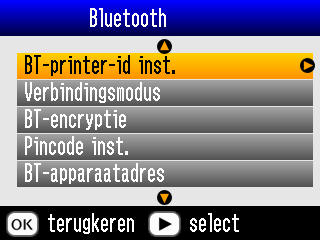 Via het LCD-scherm van de printer kunt u instellingen opgeven voor de draadloze Bluetooth-communicatie.
