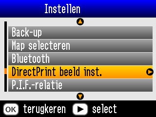 Selecteer DirectPrint inst. met de knop of en druk op .