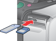 Geheugenkaarten in de printer steken