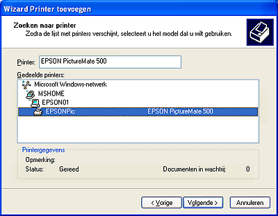 Klik op OK. De naam van de gedeelde printer verschijnt in de lijst met poorten van de Kiezer.