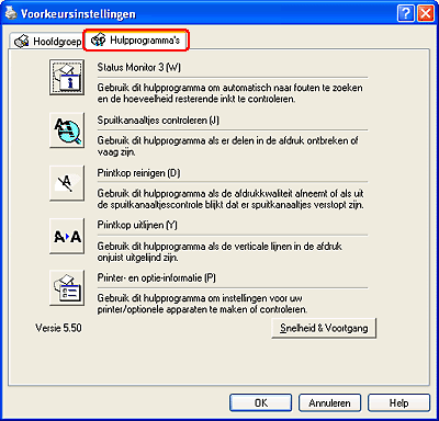 Met dit hulpprogramma kan de printerdriver de configuratie van de printer controleren. Tevens kunt u hiermee specifieke informatie over de printer opvragen.