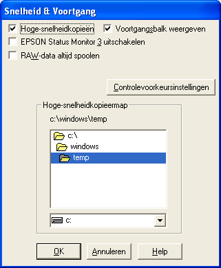 In dit dialoogvenster kunt u opties instellen die betrekking hebben op de afdruksnelheid en de voortgang van het afdrukken.