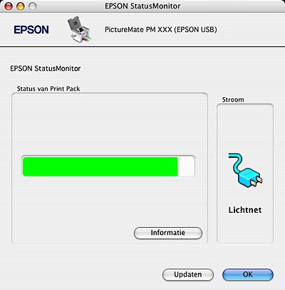 ![]() Voor Mac OS XU kunt de PicturePack-status controleren met EPSON StatusMonitor. Ga als volgt te werk.