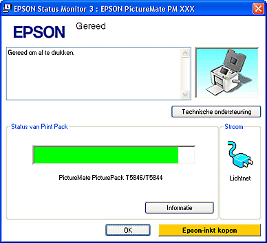EPSON Status Monitor 3 geeft een grafische indicatie van de PicturePack-status.