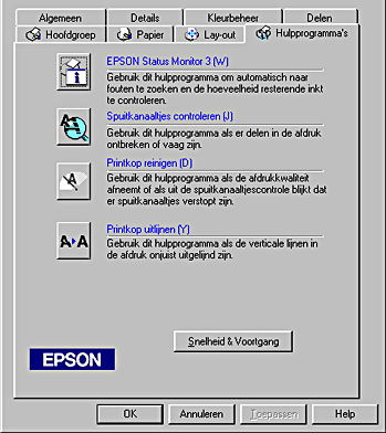 Met de EPSON-printerhulpprogramma's kunt u de printerstatus controleren en enkele onderhoudsfuncties voor de printer uitvoeren vanaf uw computer.