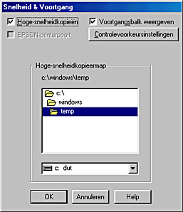 Selecteer Hoge-snelheidkopieën als u meerdere exemplaren van uw document sneller wilt afdrukken. De afdruksnelheid wordt verhoogd doordat bij het afdrukken van meerdere exemplaren van een document de ruimte op de vaste schijf als cache wordt gebruikt.