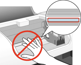 | Raak het bewegende mechanisme in de printer niet aan. |