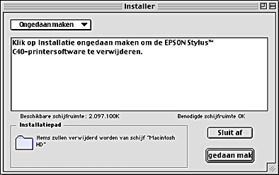 Selecteer het pictogram EPSON Stylus C40 Series of EPSON Stylus C20 Series en klik op OK.