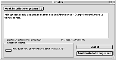 U kunt de installatie van de printerdriver onder Mac OS X niet verwijderen.