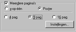 ![]() | Schakel op het tabblad Lay-out (Windows) of in het dialoogvenster voor de lay-out (Macintosh) het selectievakje Meerdere pagina's in. Selecteer vervolgens het keuzerondje Poster. |