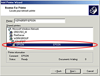 Double-click the icon of the computer that is directly connected to the printer. Then, click the icon for the appropriate printer.