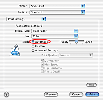 When Automatic is selected with Print Settings, the printer software takes care of all detailed settings based on the current Media Type and Color settings.