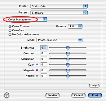 Selecting Color Management from the pop-up menu gives you control over the color matching and adjustment methods provided with the printer driver. Follow the instructions below.