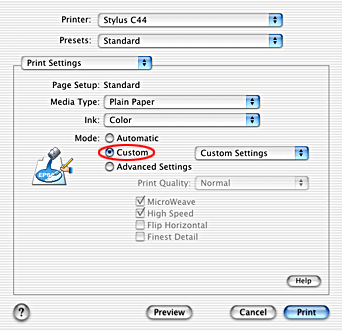 ![]() | From the Custom Settings list, select the most appropriate setting for the type of document or image that you want to print. |