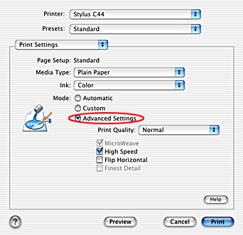 Selecting Advanced Settings gives you complete control over your printing environment. Use these settings to experiment with new printing ideas or to fine-tune a range of print settings to meet your individual needs.