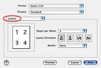 From the pop-up menu, select Layout as the Multi-Page setting to print multiple pages of your document on one sheet of paper.