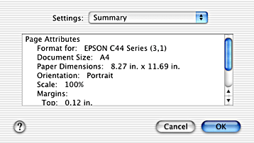 With Summary selected in the Settings list, you can confirm the current settings in the Page Setup dialog box.