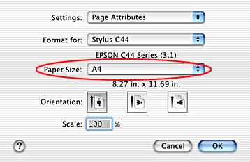 Select the desired Paper Size setting in the Page Setup dialog box.