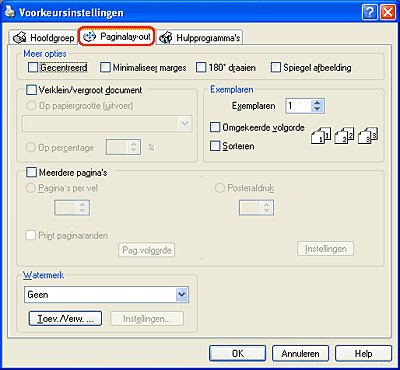 Hiermee wordt het mogelijk om de opties Pagina's per vel en Posterafdruk te gebruiken.