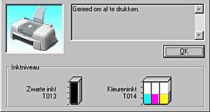 Het venster met de voortgangsbalk verschijnt automatisch als u een afdruktaak naar de printer stuurt. In dit venster kunt u zien hoeveel inkt er nog beschikbaar is.