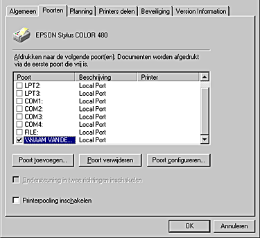 Controleer op het tabblad Poorten of de nieuwe poort is toegevoegd en het bijbehorende selectievakje is ingeschakeld. Klik op OK om de printerdriver te sluiten.