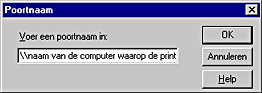 Het volgende dialoogvenster verschijnt. Typ het volgende in het tekstvak: \\naam van de computer waarop de printer is aangesloten\naam van de gedeelde printer.