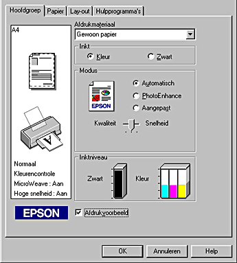Schakel op het tabblad Hoofdgroep het selectievakje Afdrukvoorbeeld in als u een afdrukvoorbeeld van uw document op het scherm wilt bekijken voordat u het document afdrukt.