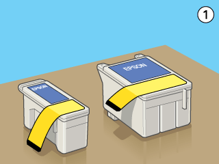 Als u een cartridge hebt geïnstalleerd zonder de gele beschermstrook te hebben verwijderd, dient u de cartridge te verwijderen en een nieuwe te installeren. Maak de nieuwe cartridge gebruiksklaar door de gele beschermstrook te verwijderen en installeer de cartridge vervolgens in de printer.