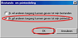 Schakel het selectievakje Ik wil anderen toegang kunnen geven tot mijn printer(s) (I want to be able to allow others to print to my printer(s)) in en klik op OK.