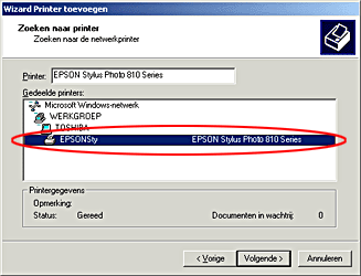 Selecteer Netwerkprinter (Network printer) en klik op Volgende (Next).