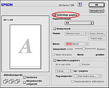 Schakel in het dialoogvenster voor de lay-out het selectievakje Volledige pagina in (Macintosh).