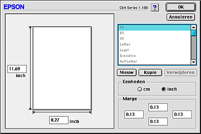 Eigen papierformaten definiëren voor Mac OS 8.6 en 9.x
