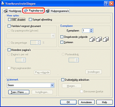 Hiermee wordt het mogelijk om de opties Pagina's per vel en Posterafdruk te gebruiken.