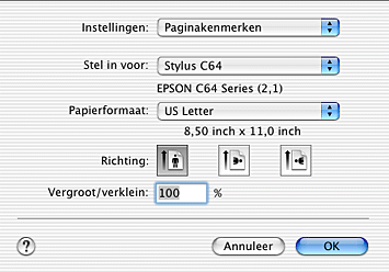 Instellingen van de printersoftware / Voor Mac OS X