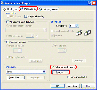 Dubbelzijdig afdrukken met de standaardinstellingen voor Windows
